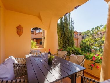 Está situado en la segunda planta y cuenta con un agradable hall de entrada con zona de armarios, cocina renovada, y un amplio salón-comedor con acceso directo a dos terrazas y bonitas vistas a los jardines.