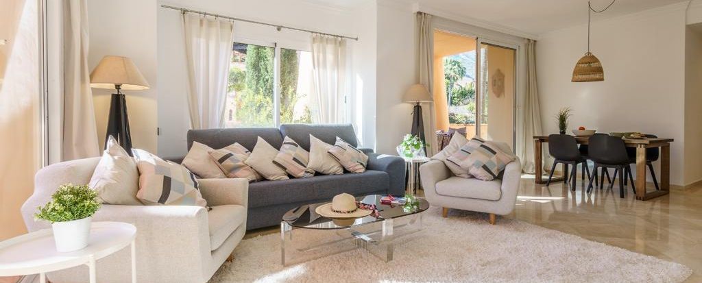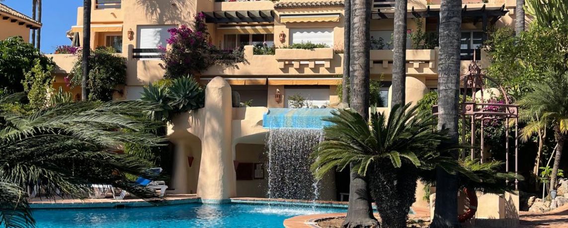 La propiedad está ubicada en una urbanización cerrada AlFar, con bonitos jardines tropicales y piscina comunitaria con cascada de agua. Es una comunidad muy privada, situada cerca de la oficina principal de seguridad de Sierra Blanca. La vivienda dispone de una plaza de aparcamiento.