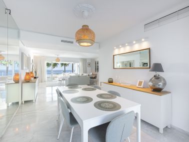 Torre Real es una prestigiosa urbanización que ofrece jardines comunitarios con vegetación consolidada, dos piscinas, pistas de tenis y seguridad las 24 horas con cámaras. El apartamento está situado en un bloque elevado, lo que proporciona impresionantes vistas panorámicas al mar, mientras que el edificio de enfrente ayuda a aislar la propiedad del ruido de la carretera. La urbanización está rodeada de zonas verdes y ofrece fantásticas vistas desde todas las habitaciones: vistas al mar desde el salón y el dormitorio principal, y preciosas vistas al jardín desde el segundo dormitorio y la cocina.
