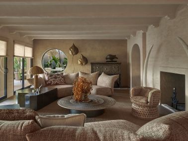 La villa principal se distribuye en tres niveles meticulosamente diseñados y sirve como un santuario de refinamiento y comodidad. Al llegar, fuentes de agua serenas y un impresionante vestíbulo acristalado marcan el tono de los sofisticados interiores. El hall de entrada conduce a una amplia sala de estar con techos abovedados, una elegante chimenea y un distinguido bar, ideal tanto para el relax como para el entretenimiento. Este espacio se abre a una gran terraza equipada con chimenea de gas, salón exterior y comedor, todo con vistas a la piscina climatizada de agua salada de la finca. Adornada con azulejos andaluces antiguos y realzada por un chorro de agua y cubierta solar eléctrica, la piscina está rodeada de vegetación que integra a la perfección los espacios interiores y exteriores.