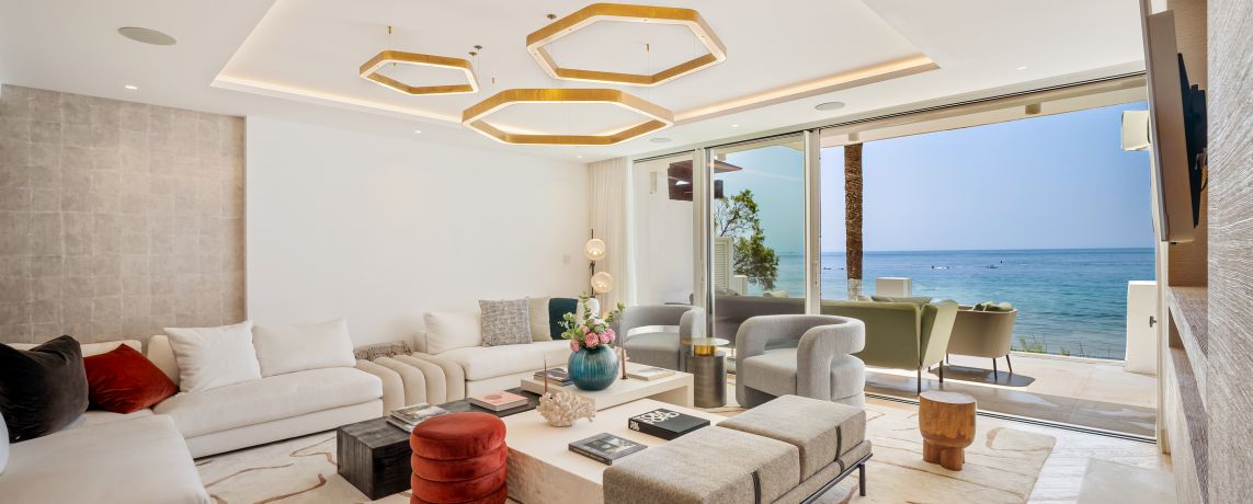 Despierte con el resplandor del mar. Salga a su terraza y sienta el ritmo de la costa incluso antes de que comience el día. Esta refinada residencia dúplex, ubicada en el icónico Puente Romano Resort, ofrece un equilibrio excepcional entre privacidad, diseño y vida en primera línea de playa.