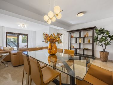 The property features a spacious living-dining room with access to a 30 m² west-facing terrace, perfect for enjoying the Marbella sunsets. It consists of 3 bedrooms and 3 bathrooms, two of them en suite, and a newly renovated kitchen equipped with premium Bosch and Siemens appliances. Throughout the home, there are beige marble floors, large built-in wardrobes, a utility room, and high-quality finishes.